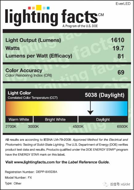 DOE Lighting Facts label 是美国能源部(DOE)实施的能效标贴项目,与 CALiPER 项目(Commercially Available LED Product Evaluation and Reporting)类似。