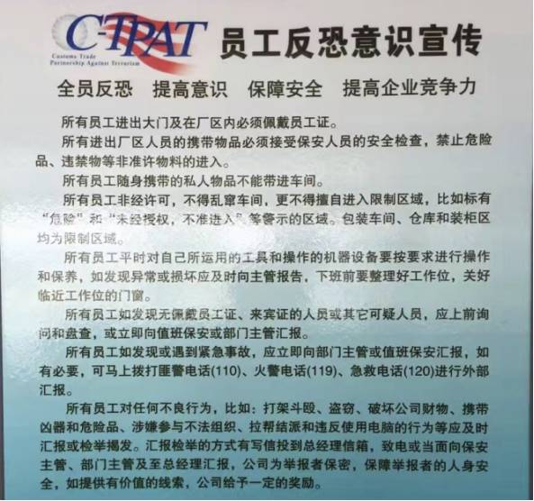 ▲图示:为美国提供贴牌的代工厂特色,需要进行反恐培训
