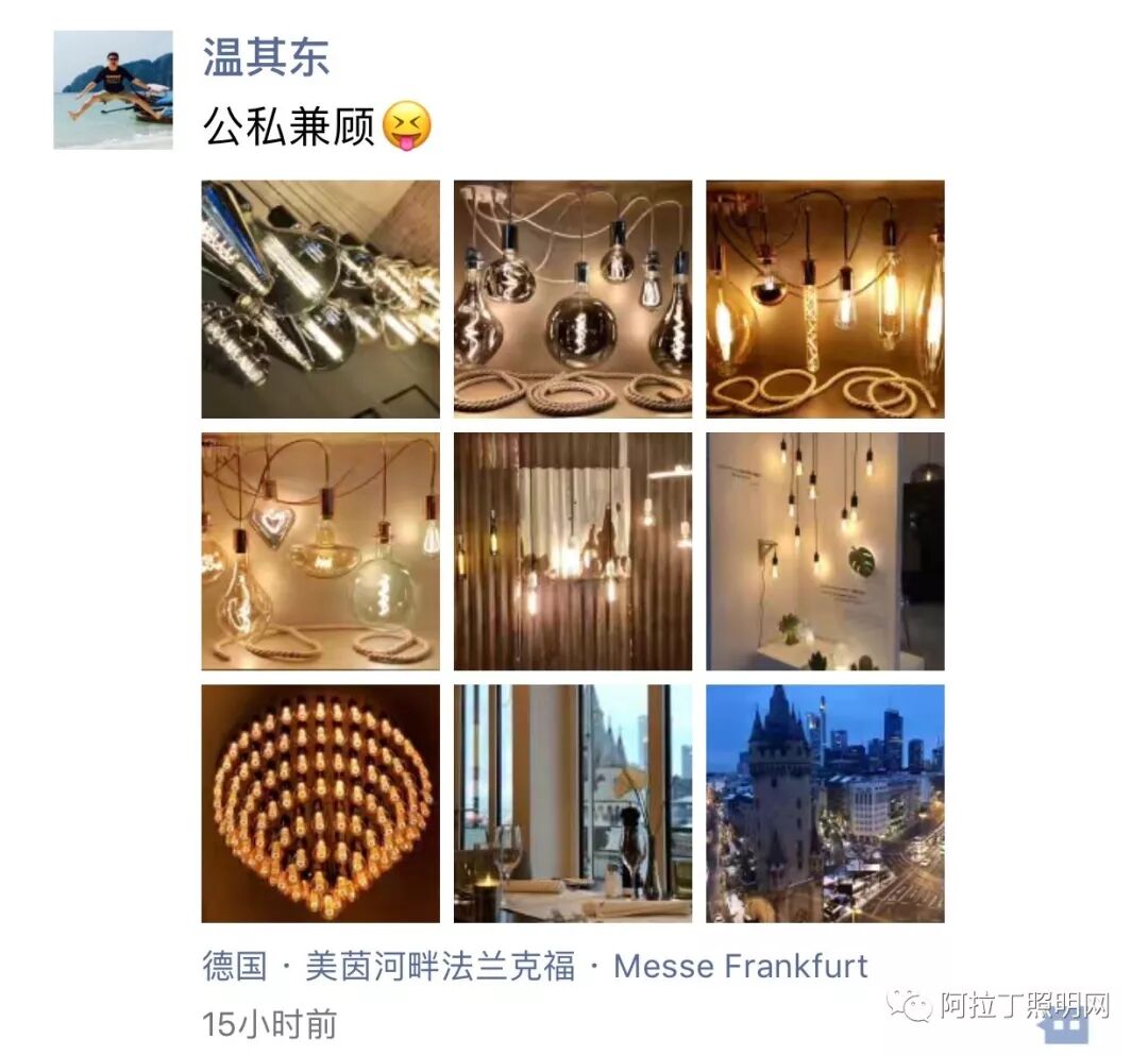 由于种种原因,A君未能到法兰克福现场参与这场属于照明人的盛宴,不过在朋友圈中,也看到了各路大神po的现场图,如同身临其境。接下来,让A君带您一起刷一刷朋友圈,看看今年的法兰克福照明展都展了些什么。